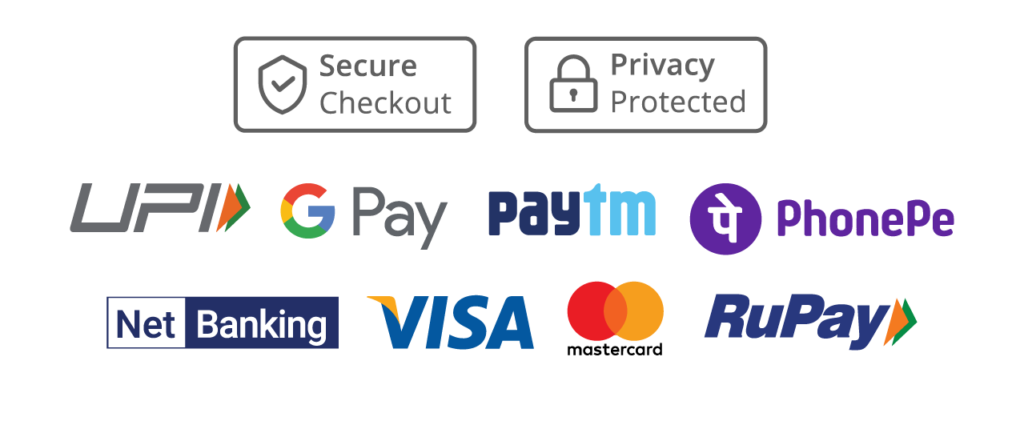 We accept UPI, Google Pay, PhonePe, Paytm, Credit Card, Debit Card and Net banking, with secure payment gateway.
